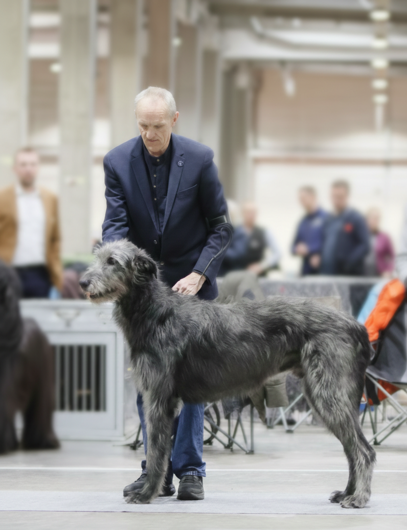 Hunden skal på en officiel udstilling (CAC/CACIB) have opnået, enten – 2 danske udstillingscertifikater eller